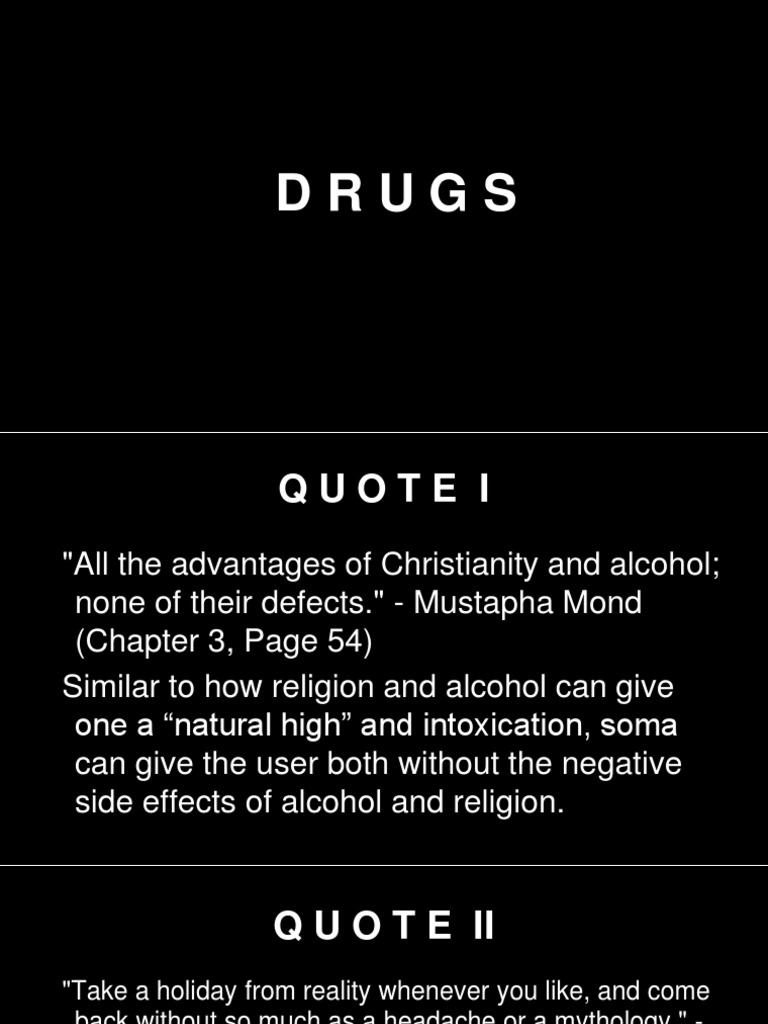 Quotes About Soma In Brave New World. Alls well with the world. And theres always soma to calm your anger to reconcile you to your enemies to make you patient and long-suffering. The optimum population is modeled on the iceberg- eight-ninths below the water line one-ninth above.